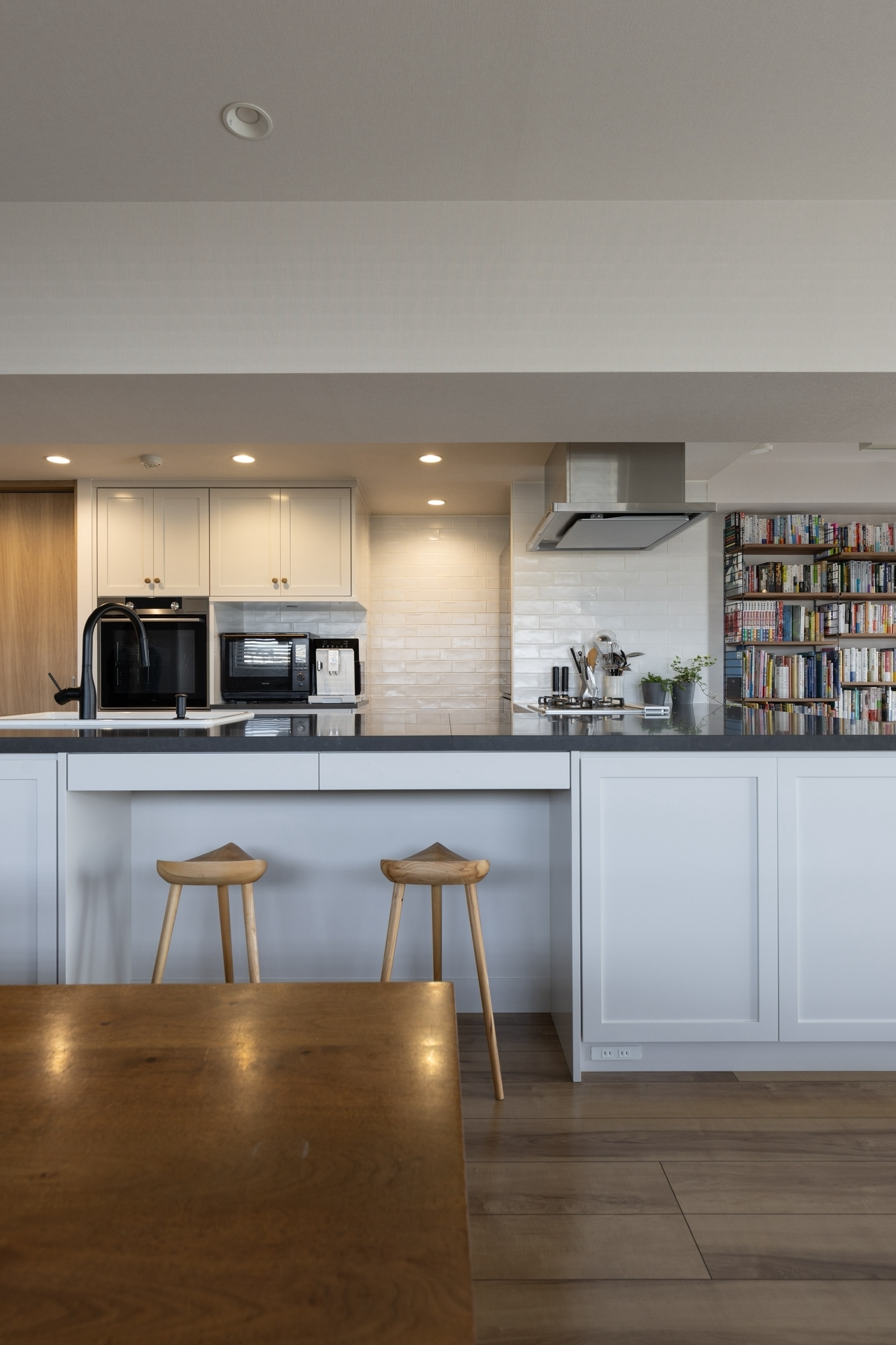 「新築だからそのまま住むもの」と思いがちですが、暮らしに合わせて手を加えることも、ひとつの選択肢です。元々あった壁を取っ払い、広々としたキッチンへとリノベーションを行いました。